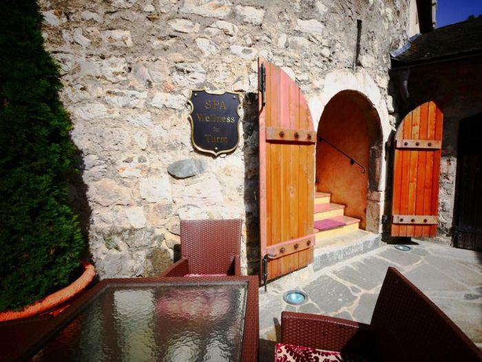 The historic tower from 1150 has been changed into a modern spa tower with Finnish sauna, Turkish steam bath, massage, GYM with the newest equipment from Technogym, a rest room and on the top a exceptionel spa lounge with a fantastic stunning view over the roofs of the castle and into the Inntal and Alps.