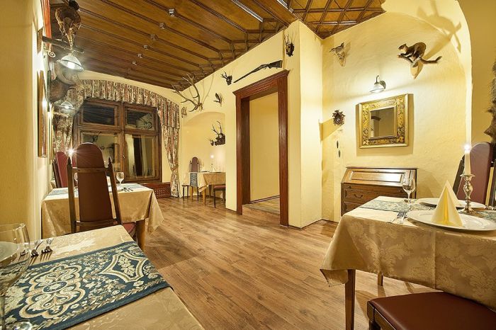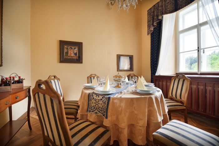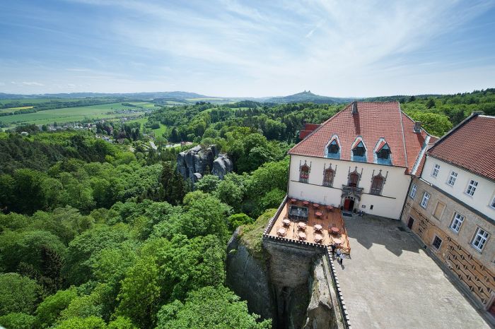 In the second court of the EA Chateau Hotel Hrubá Skála**** you will find the Zámecká restaurace (Castle Restaurant), Letní vyhlídková restaurace na hradbách (Summer Look-out Rampart Terrace Restaurant) and Lovecký salonek (Hunter's Lounge). There is also the Středověká krčma (Medieval Tavern) available.