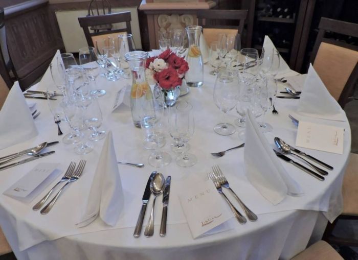 As a main dish, we recommend rabbit rump and leg confit with fresh leaf spinach, liver paste and sage sauce and as dessert chocolate pralines.