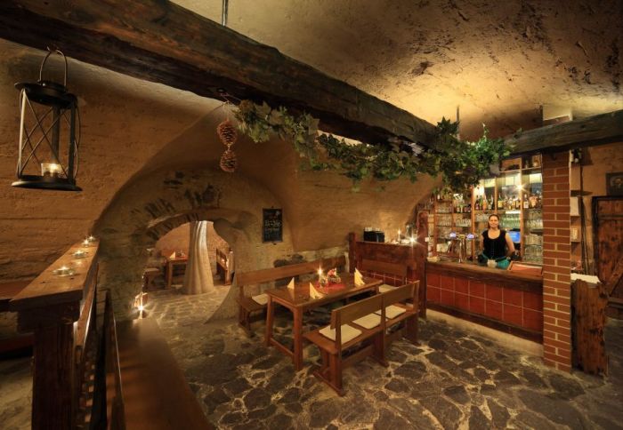 The underground restaurant, named Katakomby (Catacombs), will surely captivate you with its unusual atmosphere. It features recently discovered arches from the thirteenth century. Food is prepared before our guests on charcoal, as it was during the middle ages.