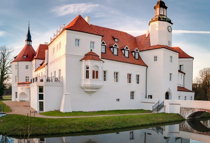 They rebuild the castle and fortified it with three towers and dug the moat. In 1697 the family of the Promnitz acquired the castle further construction activity took place.