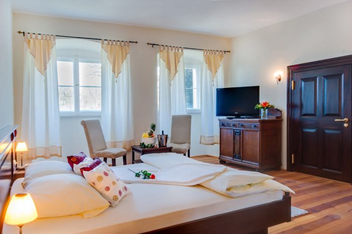 The à la carte restaurant "TafelSPIZZ" welcomes its guests in the Castle Hotel Drehna in a glass palisade walk and the "Golden Hall". The views are faced to the courtyard or the park and enhance the restaurant atmosphere and interior. Take a seat and enjoy the combination of local and international dishes. Our chef leans his creations at the proffered to Prince Times Food and interprets them with the modern ease of today's kitchen.