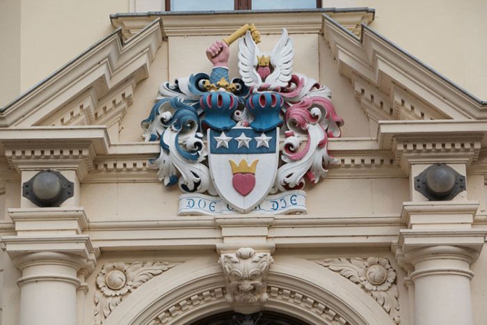 Due to his occupational activities the Earl had already met the Belgian interior designer Henry van de Velde (1863-1957) at the end of the 19th century. The artist is known all over Europe for his artistic skills in Art Nouveau. Together they planned alterations of certain parts of the castle. Van de Velde delivered the drafts for the intricate wall panelling with the golden ornaments in the entrance hall, for the design of the representative staircase to the first floor, the drawing room (today the library), the grand salon with the wall panelling and the built-in sideboards, the wall lamps as well as the elegant brass door handles. Furthermore he designed the connecting wing between castle and stables.