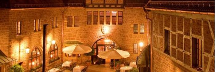 Far from the restlessness and constrictions of today’s city life, surrounded by forest as far as the eye can see and close to the clouds: This historical site still is as “hoch und froh” (high and merry) as Goethe once experienced it. It is the special feat of this house, to have created out of this unmistakable motif of landscape and architecture, a composition that speaks to all the senses. The Wartburg has retained its friendly hospitality, since the times of the first pilgrims that knocked on its doors. Welcome, service and a good night’s lodging have always been - and still are - a well-kept tradition at the Hotel auf der Wartburg. Now, after ninety years as the „Gasthof für fröhliche Leut“ (guesthouse for merry people) the Hotel auf der Wartburg presents itself once again as a place of comfort, of calm and merriment. As a guest, to feel comfortable and secure as if at home might have become a rare thing – but it is not impossible.