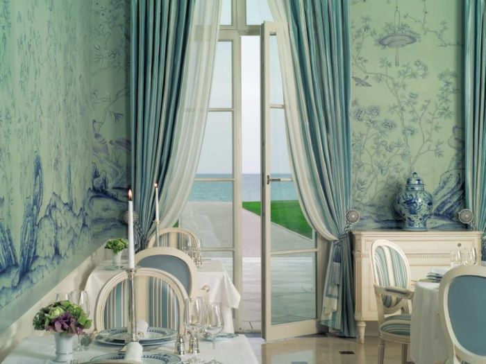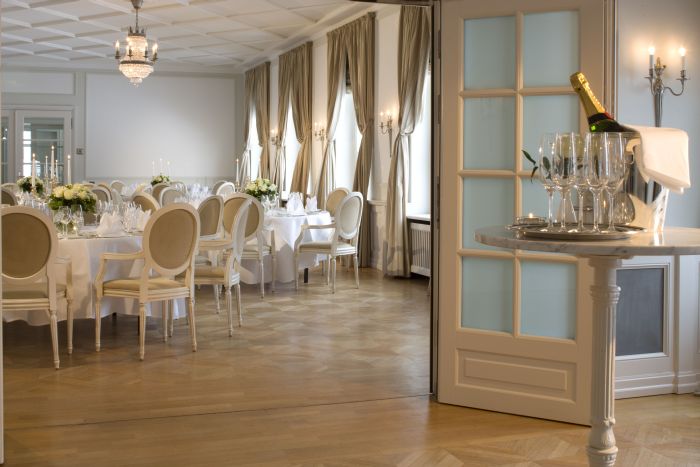The 10 tables can seat a maximum of 26 guests and offer a breath-taking view of the Baltic Sea. With its hand-painted silk wall hangings and chandeliers, the gourmet restaurant offers a gracious and unique atmosphere.