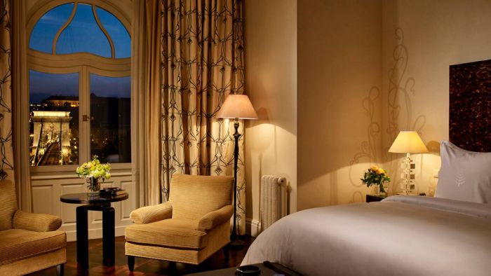 Four Seasons Hotel Gresham Palace Budapest is centrally located at the end of the renowned Chain Bridge, with panoramic vistas of the Danube and the hills of Buda.