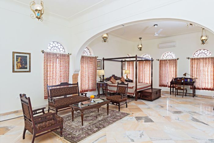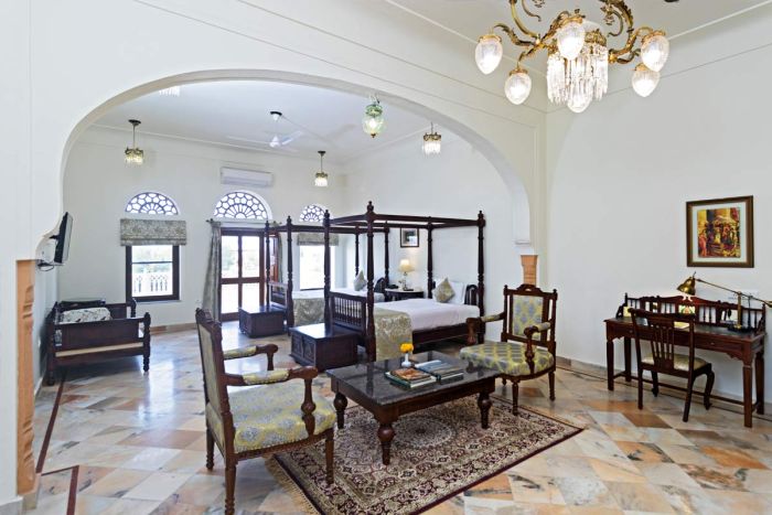 Laxmi Niwas Palace Hotel, a premium Hotel in Bharatpur, offers a cozy and comfortable rooms that are provided with all amenities and luxuries. There are 20 spacious and elegant rooms in the hotel that are tastefully decorated and furnished with antique furniture. Our rooms provide you an experience of the past, but at the same time provide you all the amenities of modern life. The attached bathroom is spacious and provides you hot and cold running water, clean towels and high quality toiletries. The view from these rooms is very beautiful and fills you with new energy. They either overlook the beautiful garden surrounding the hotel or the large swimming pool.