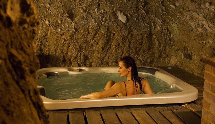 We have two wellness centers; one located in a natural cave and the other in a house in the woods in the secret garden under the walls. Both are equipped with turkish bath, jacuzzi, sauna, sensory shower and relaxation area. The main building also houses several rooms for massages and different types of treatments for singles and couples - see sections massages and treatments.