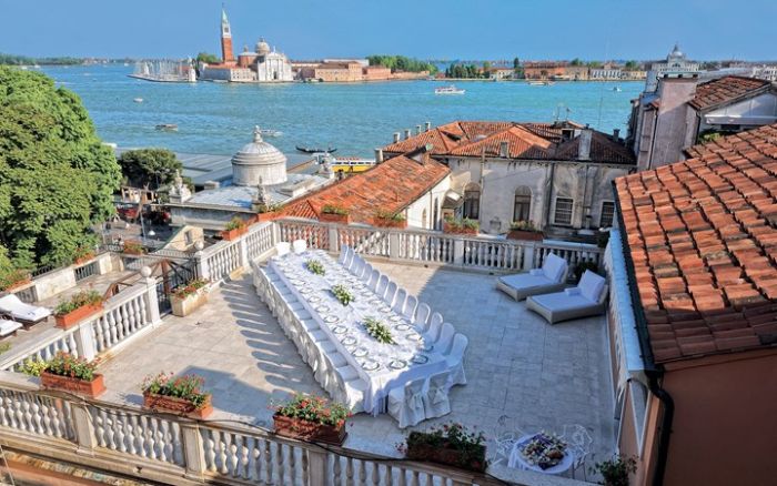 Looking out over St. Mark's Basin and San Giorgio Island, strolling the large terraces or out on a typical Venetian roof terrace at the first light of dawn or in the golden shimmer of sunset, fill your gaze with memories that will never leave you.