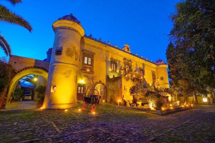 The castle is situated by the sea although it is hidden away by a wealth of trees and greenery. The grounds are perfectly situated between the romantic town of Taormina and the fiery volcano Etna, and is surrounded by a flourishing and calm Mediterranean garden.