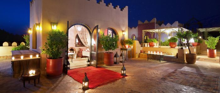 We have 28 bedrooms and suites, including ten luxurious bays, some of which have private dive pools. All are individually furnished with traditional Moroccan furniture and antiques, as well as from the extensive collection of Luciano Tempo, Kasbah Tamadot's former owner.