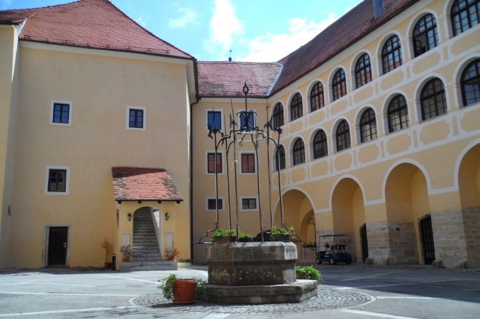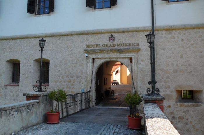 A former medieval Mokrice castle is now a refurbished high category boutique hotel with period furnished hotel rooms and apartments in the castle towers.