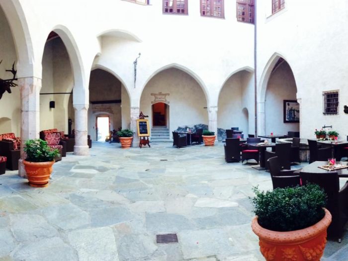 The historic tower from 1150 has been changed into a modern spa tower with Finnish sauna, Turkish steam bath, massage, GYM with the newest equipment from Technogym, a rest room and on the top a exceptionel spa lounge with a fantastic stunning view over the roofs of the castle and into the Inntal and Alps.