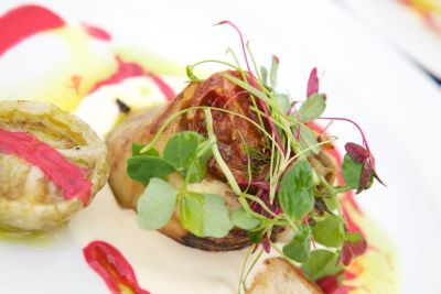 Chateau potatoes, roasted carrots, green beans, horseradish sauce, pan gravy