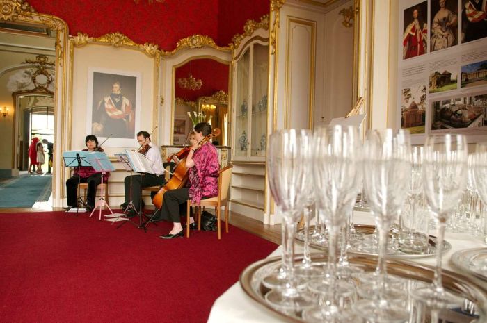 Although the majority of these collections were dispersed when the house was sold in 1917, full-length portraits still hang within massive gilt frames in the Staircase Hall, and the sitting room is furnished to reflect the original style of the 1840s. The gardens and dairy contain a remarkable collection of 18th- and 19th-century statues.