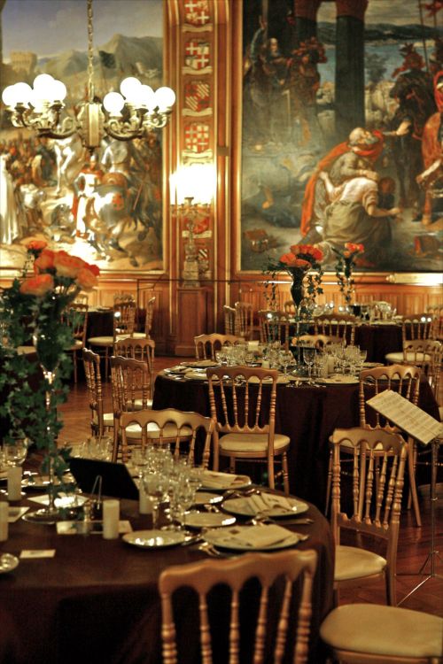 The guests will pass in succession through the State Appartments, the Gallery of Mirrors, the Queen’s Appartments, the Small Appartments, and the King’s Chamber, before arriving at the Hall of the Crusades. Throughout the visit, chamber music ensembles and troupes of 10 actors and dancers, in court dress, will be stationed along the route: