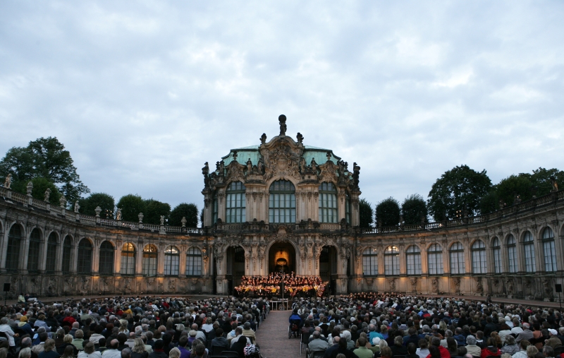 The world-famous Zwinger is one of the most magnificent Baroque buildings in Germany. With its pavilions and galleries, the “Crown Gate”, the “Nymphs’ Bath” and not least the gardens in the Zwinger courtyard, it is an oasis for every visitor to Dresden. The strange-sounding name “Zwinger” is a term used in military architecture and is a reference to the building’s original position in front of the defensive wall around the city. However, even in August the Strong’s time the Zwinger did not have the function of a fortification.
