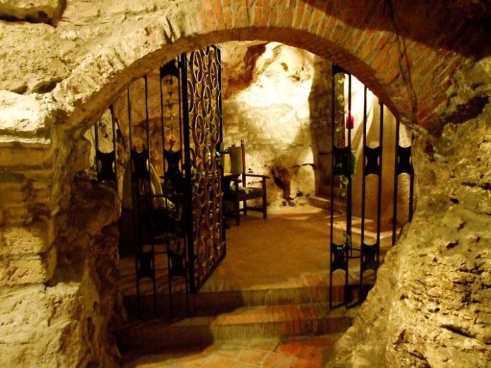 Faust Wine Cellar is located in a historical underground in the Buda Castle District. The stairs are leading down from the remains of a 13th century Dominican Cloister, ending at the cellar which is part of the huge labyrinth system underneath the Caste Hill, carved in the middle ages as an escape route.