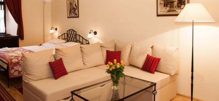 All the 41 rooms, located in the three wings of the hotel, are equipped with facilities such as a bathroom, a TV, a mini bar and a telephone to provide maximum comfort for our guests. The rooms of the western wing have a view onto the River Raab and Radó Island whereas the others look onto the inner yard. Our double and triple rooms are equipped with a bathroom, a TV and a telephone. Most of our rooms also have a mini-bar and internet access. The bigger rooms have a sofa and a lounge as well.