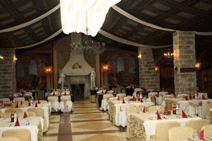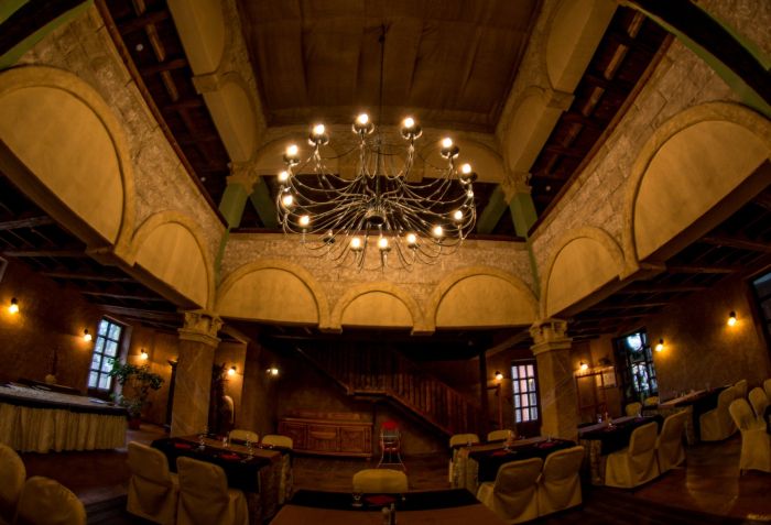 In the Rittersaal, which is located in the Renaissance Palace, you can pamper yourself, next to the crackling fireplace in the center of the hall. Our restaurant with a medieval atmosphere is suitable for 250 persons. It is equally fit for hosting closed gourmet dinners, as well as weddings and celebrations with several hundred guests.
