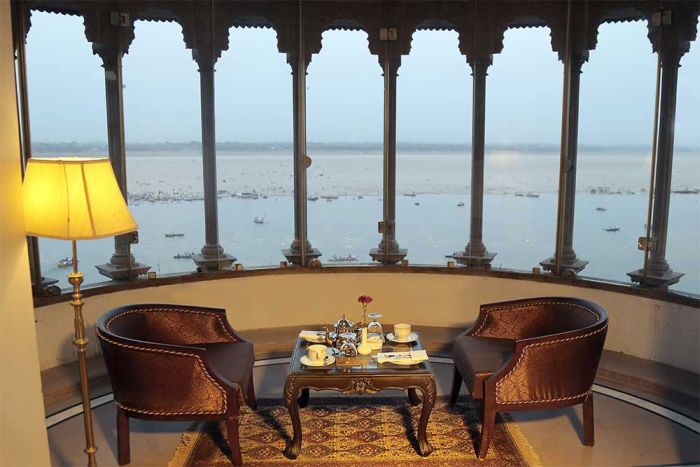 The rooms and suites of the Brijrama Palace are very tastefully decorated. The palace has 32 such rooms that offer you a unique experience of ancient world charm with completely modern facilities. The rooms and suites open to spacious corridors with an abundance of natural light and fresh air. All the guest rooms offer seating for leisure with privacy. All the corridors on the upper level of the palace offer access to lovely terraces with breathtaking views of the river and the horizon. Guests can enjoy spectacular views at sunrise and sunset.