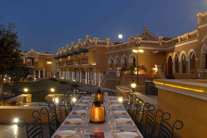 Situated 14 kms away from the bustling city of Rajkot, on Kalawad road-experience serenity, peace & clean fresh breeze, whilst being surrounded by the rich heritage, history & royal comfort within this grand monumental property spread over 7 acres.