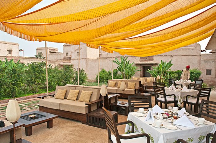 The many pillared outdoor Bardari ar the all day dining pavilion and serves both Indian and world cuisine.