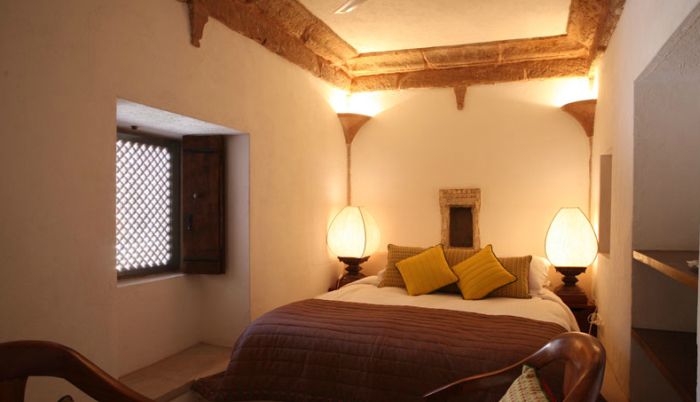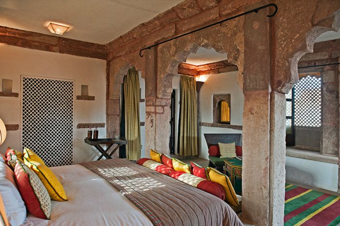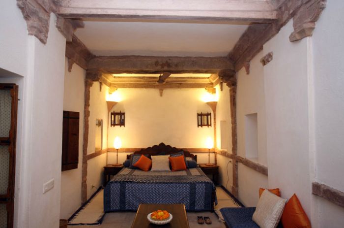 There are 27 rooms spread through 10 havelis. Each haveli has two or three bedrooms with ensuite bathrooms and a private courtyard.
