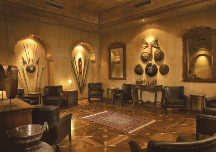 Draksh: The bar beckons the thirsty traveller with its cooling white walls, speckled with gold. Unwind under amber lights and indulge in the finest spirits from around the world.
