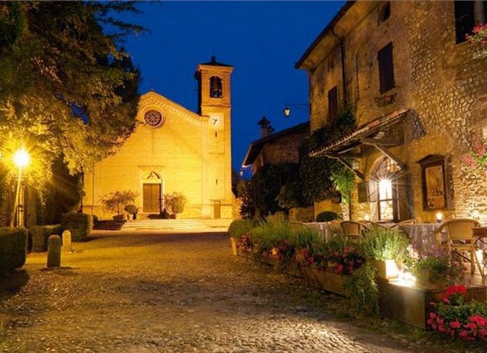 in the relaxed environment of the courtyard of Castell Arquato