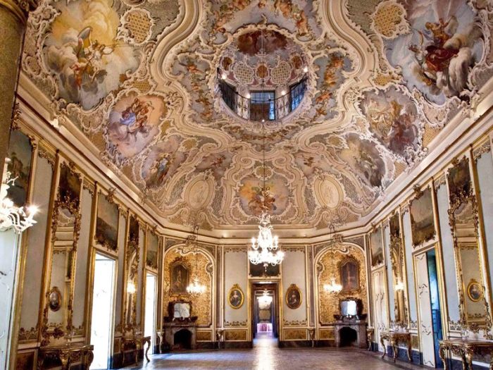 The Biscari Palace is one of the oldest palaces in Catania, a precious relic of the Sicilian rococo past. Its walls are ornate with frescoes that are still intact, hosting meetings, concerts, and events with a capability of 350 people.