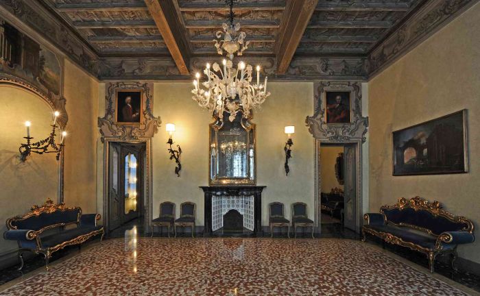 This is a double-height saloon built from scratch, demolishing the pre-existing walls and assembling, as we read in the essay by Marina Degl'Innocenti, authentic eighteenth-century paintings with stuccos, boiseries, wrought iron and frescoes of the twentieth century.