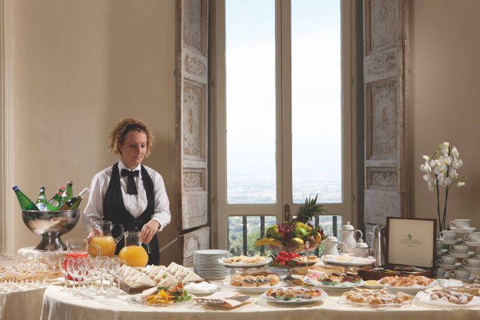 During the summer, the restaurant moves outdoor, in the wonderful hanging garden overlooking Rome.
