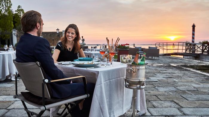 Reserve a table for two on your own private hill and surprise your loved one with a truly romantic setup: from the dining table, decorated with petals of red roses and flowers, to a breathtaking view of the Venetian Lagoon and the island’s surroundings. A private waiter will be at your complete disposal to serve you a four-course menu with delicacies of the Italian and Venetian cuisine accompanied by a selection of the best wines.
