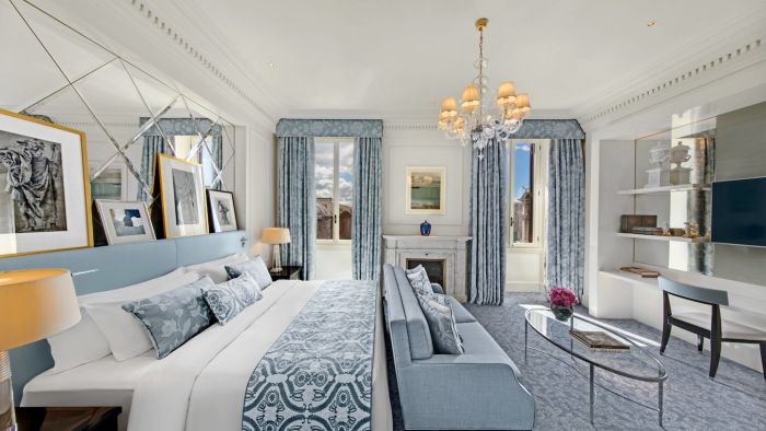 All 160 rooms and suites have been fashioned in light tones and enriched by precious Italian fabrics and handpicked objects d’art.
