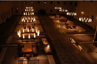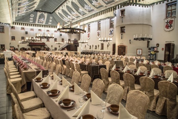 The roofed courtyard of the Hotel CASTLE RYN**** is the most brilliant and representative hall facility, is used to fulfill even the wildest dreams and fantasies of our Guests. 950 square meters and 8 meters high under the compelling canopy and surrounded by tasteful chandaliers, with historical finds exposed and highlighted in the floor - are breathtaking and offer great arrangement possibilities.