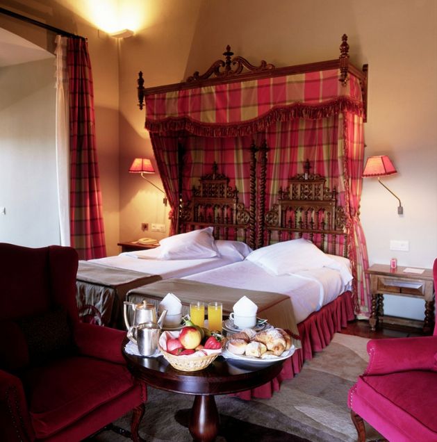 Nine towers with battlements stand guard over a regal, grandiose interior which conserves beautiful coffered ceilings, trunks, ironwork, balustrades and other decorative details from the former palace.
